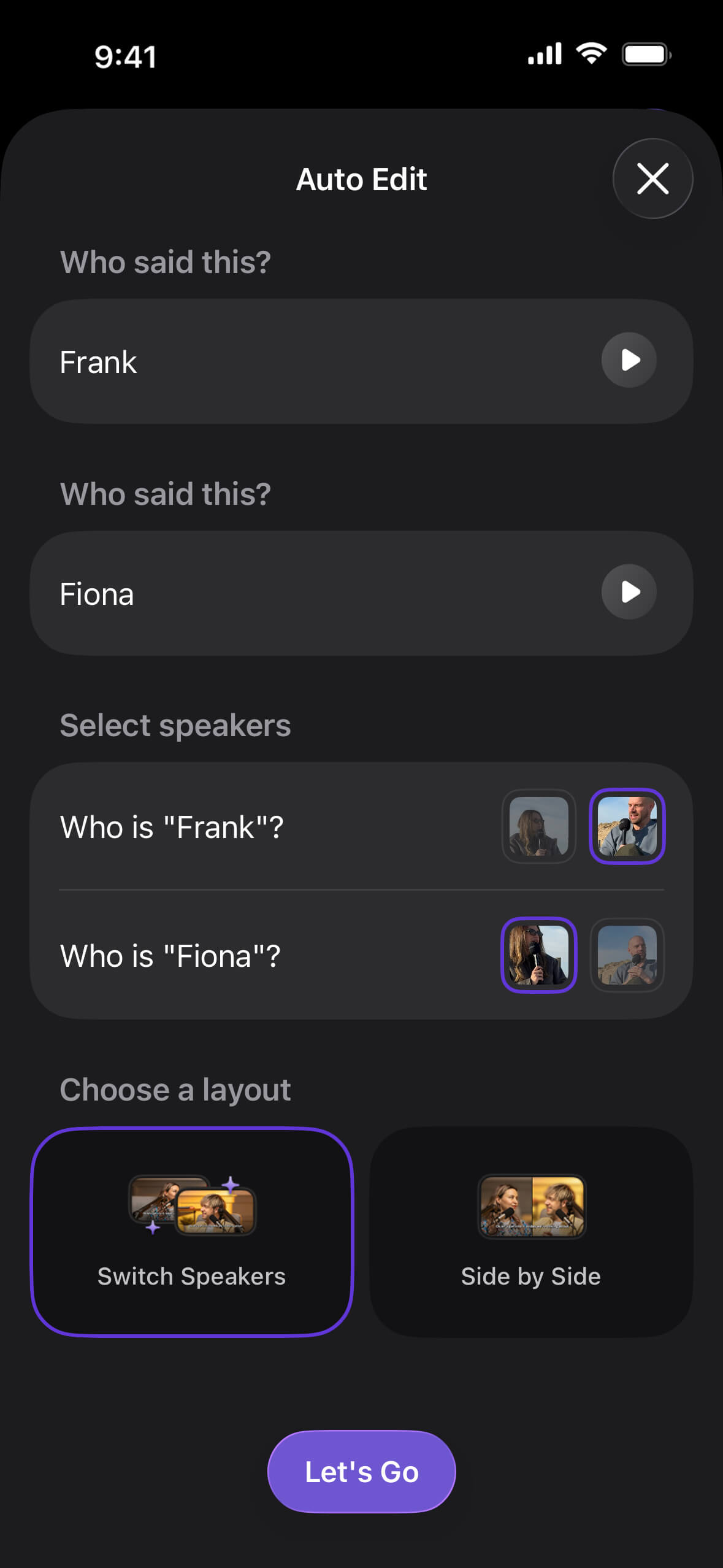 Generate multiple long-form edits and short clips for social in a tap – automatically switch speakers and save hours of editing.
